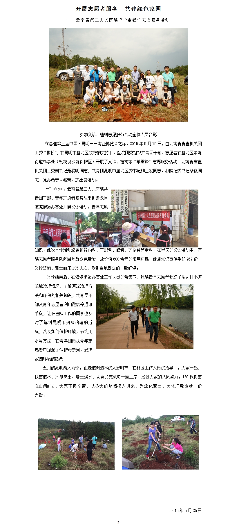 开展志愿者服务 共建绿色家园 ——云南省第二人民医院“学雷锋”志愿服务活动